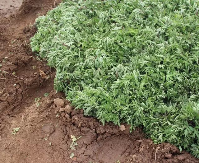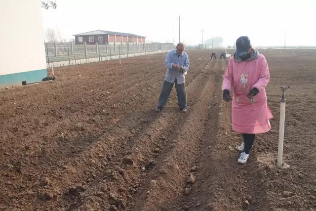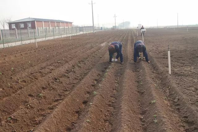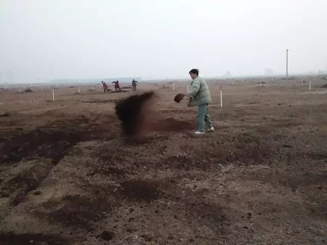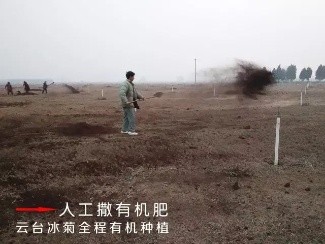 云臺(tái)冰菊基地人工施撒有機(jī)肥。